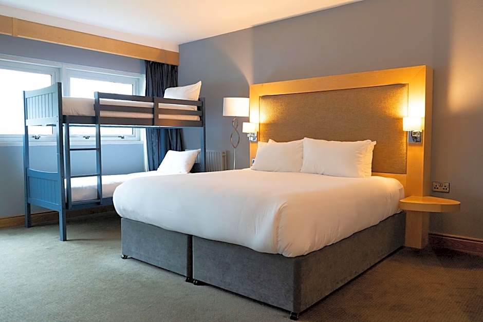 This suite contains a large bedroom with an adjoining living room. Guests will find Elemis toiletries and a newspaper in the suite.